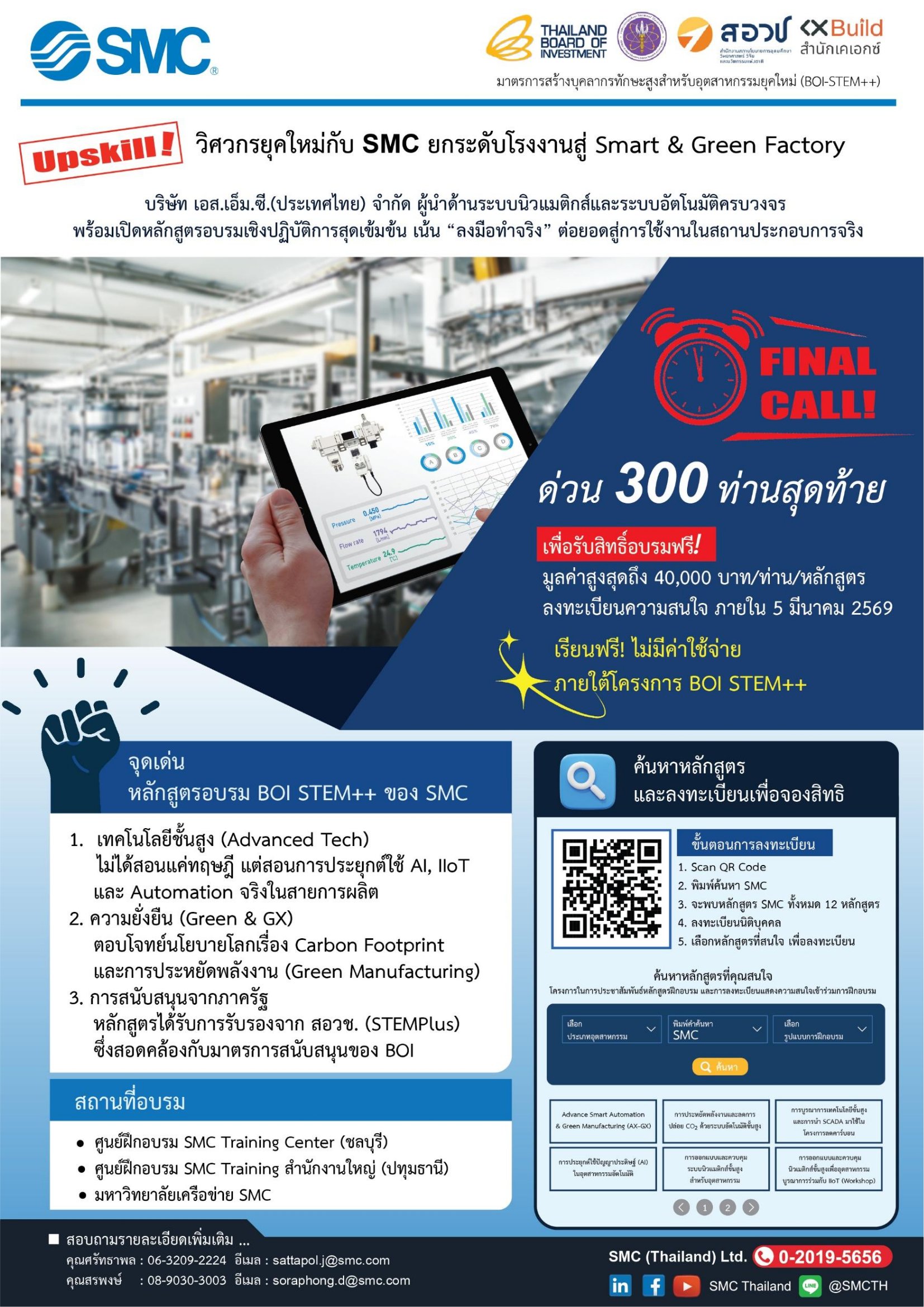 | 19 January 2026 SMC ส่งต่อโอกาสทางการศึกษาบริษัท เอส.เอ็ม.ซี. (ประเทศไทย) จำกัด ตระหนักถึงคว... ดูเพิ่มเติม |